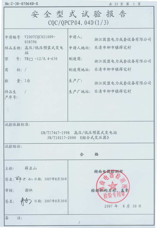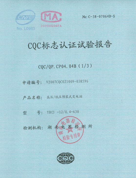 CQC標志認證試驗報告