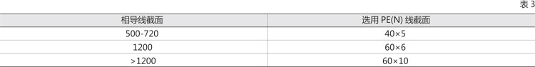 采用硬銅排,貫通水平中性接地線(PEN)或接地+中性線(PE+N)規格見表3。