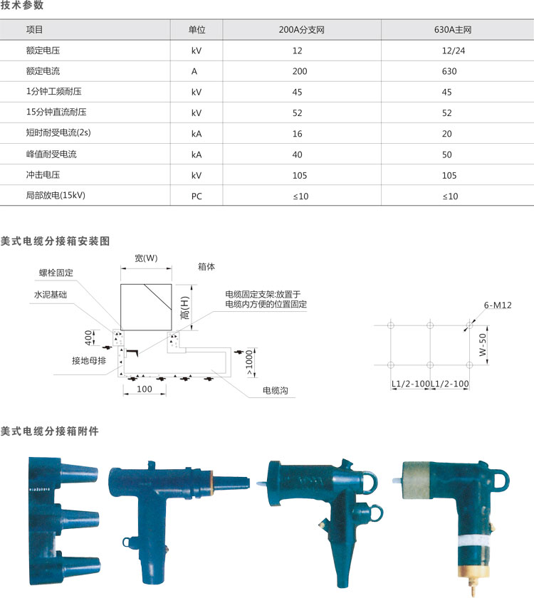 美式電纜分支箱是一種廣泛應用于北美地區電力配網系統中的輸配電工程設備.它以單向開門、橫向多通母排為主要特點,具有寬度小、組合靈活、全絕緣、全密封等顯著優點。按照額定電流一般可以分為630A主回路和200A分支回路兩種。630A主回路采用旋入式螺栓固定連接;200A分支回路采用插拔式連接,且可以帶負荷拔插。美式電纜分支箱所采用的電纜接頭符合IFFF386標準。廣泛適用于:城市電網改造、住宅小區、商業中心等城市人口密集地區。